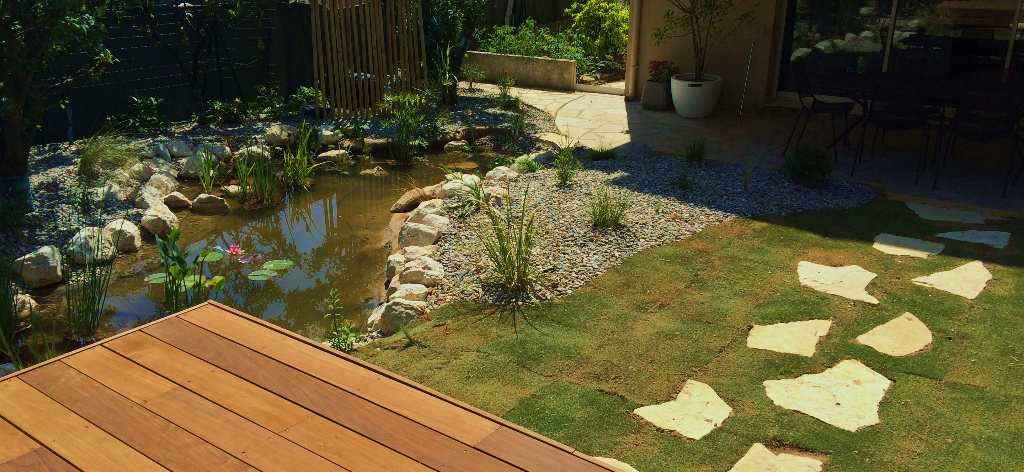 DétailsLa métamorphose du jardin d’une maison de lotissement en un jardin très nature avec son bassin aquatique. Transformer un jardin typique des années 80 avec les deux muriers platanes au milieu, des bordures en béton, un gazon mal en point présentant le handicap d’être inondé, lors de fortes orages, par les eaux pluviales du…