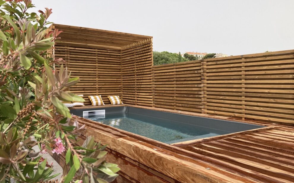 La terrasse vue plein ciel avec mini-piscine à Marseille Un projet de création de piscines sur le roof top de…