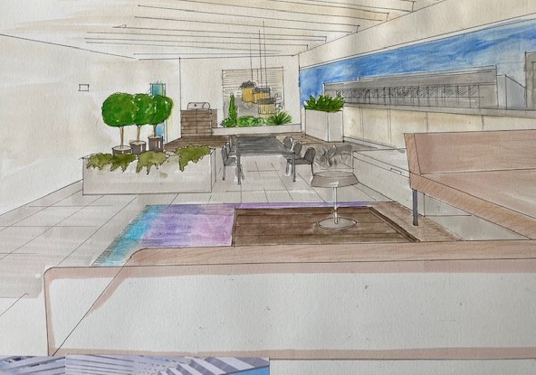 - 2 dessins en perspective à l’aquarelle vous assurant une immersion réaliste et sensible dans les volumes, les lignes et les ambiances du futur jardin
