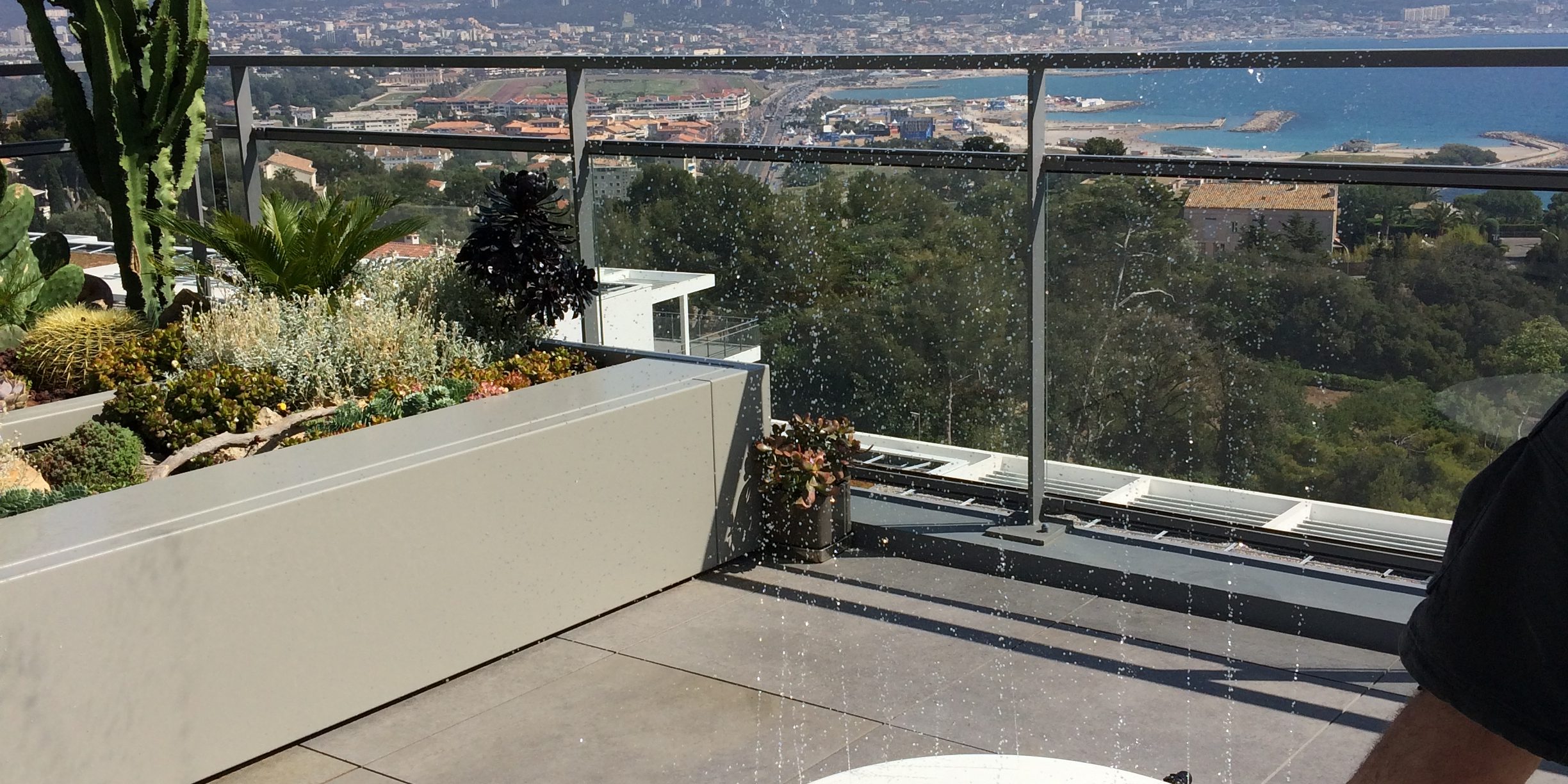 Nous avons installé cette douche de la marque VITEO dans l’aménagement d’une terrasse de prestige à Marseille