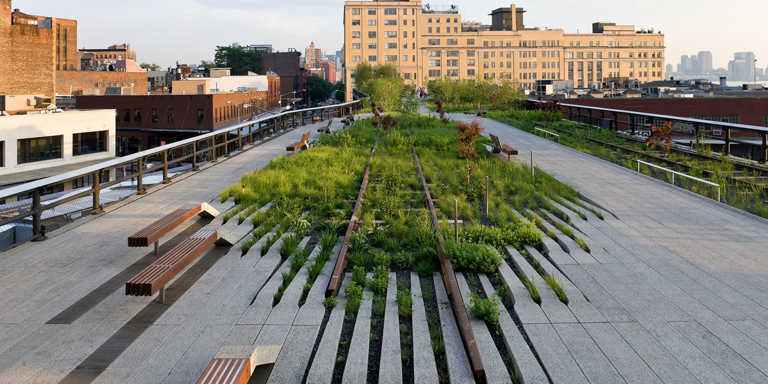 En 1999, l’association des Amis de la High Line obtient que la voie aérienne ne soit pas détruite, mais transformée en jardin public. En 2003 un concours de paysagistes est lancé pour susciter des projets d’aménagement paysager. En 2004, 2 cabinets d’architectes paysagiste sont sélectionnés, ainsi qu’une société d’experts en horticulture et paysagistes pour lancer la reconstruction. Les travaux paysagers ne commenceront qu’en 2006 avec le début du démontage des rails et le nettoyage de ce qui était devenu au fil des années un vase terrain vague envahi de végétation et décharges sauvages. Les rails ont pour beaucoup été réutilisés sur place pour être s’intégrer dans le nouveau décor