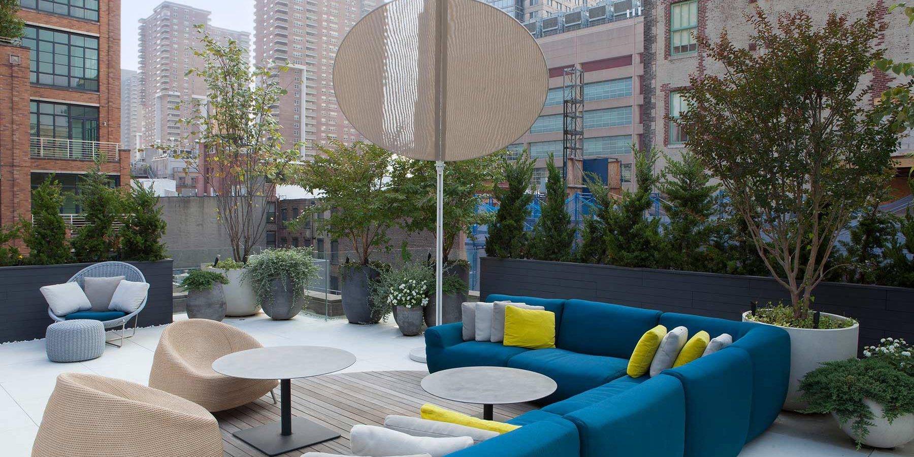 Une terrasse sur les toits de New York réalisée par Thomas Gunn, un architecte paysagiste spécialisée dans les aménagements d’espaces extérieurs contemporains pour les particuliers, les architectes, les entreprises au sein de l’agence paysagiste qu’il a créé en 2000.