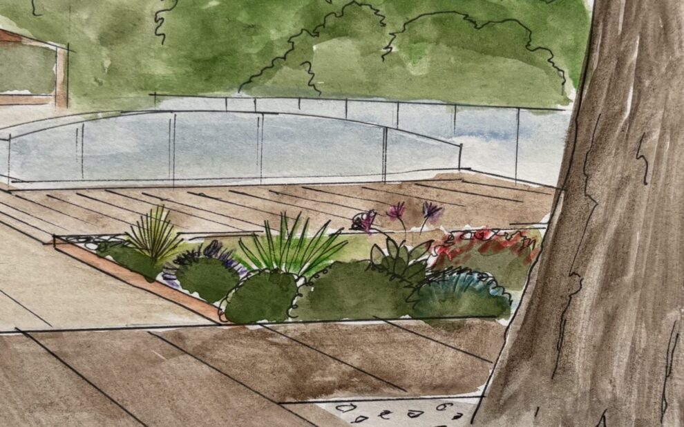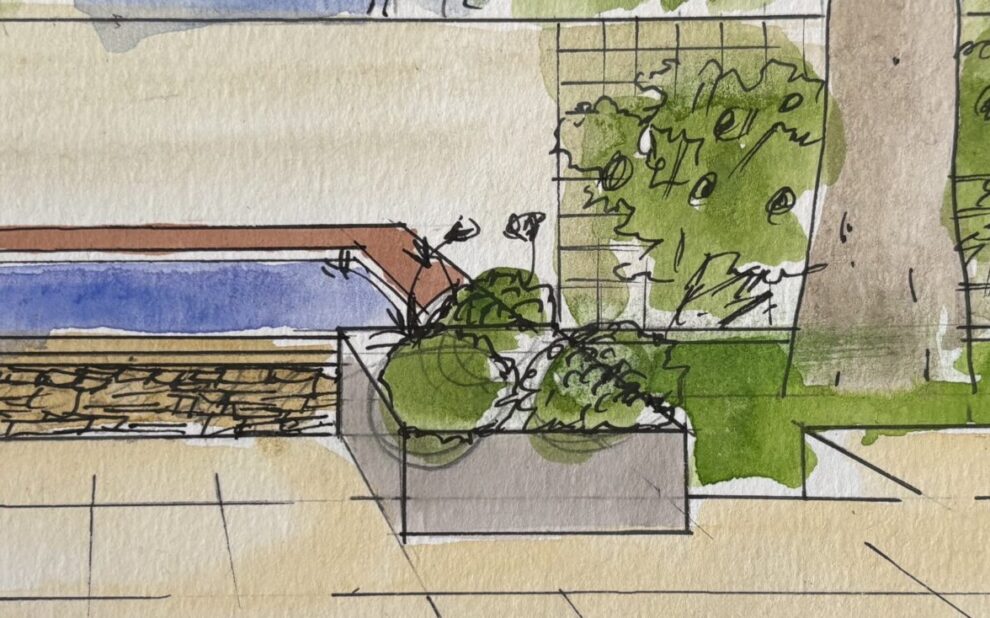 Projet d’aménagement D’un jardin de ville avec mini piscine à Marseille 8 éme La terrasse d’une maison de ville accessible…