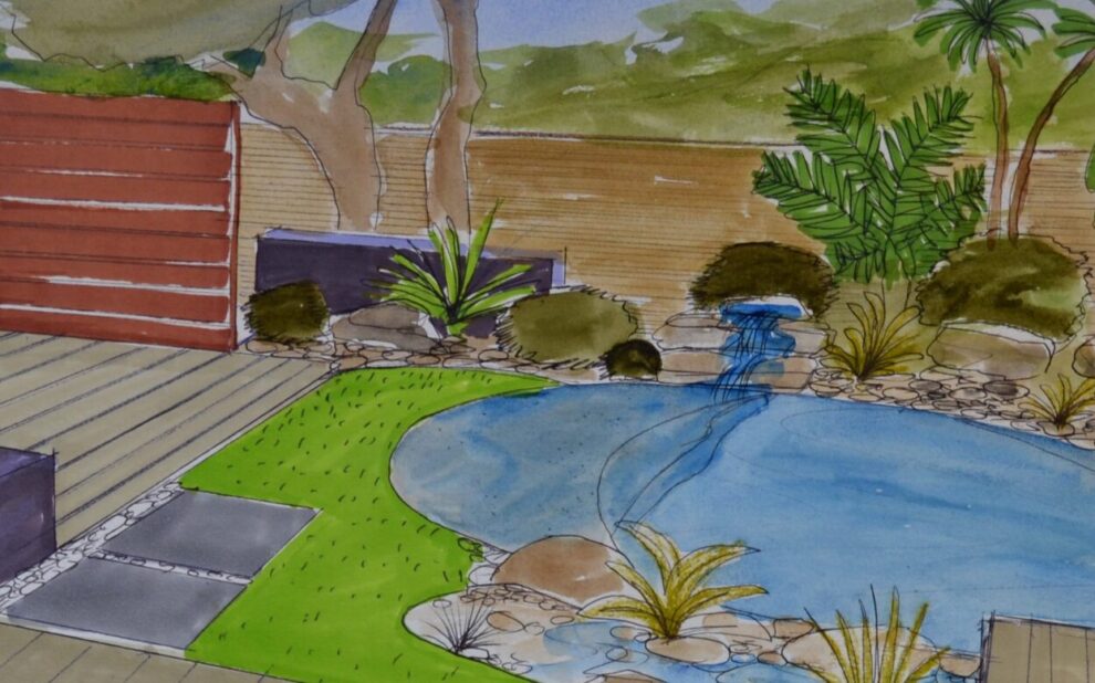Projet d’aménagement du jardin de 60 m2 avec bassin de baignage à Ollioules.