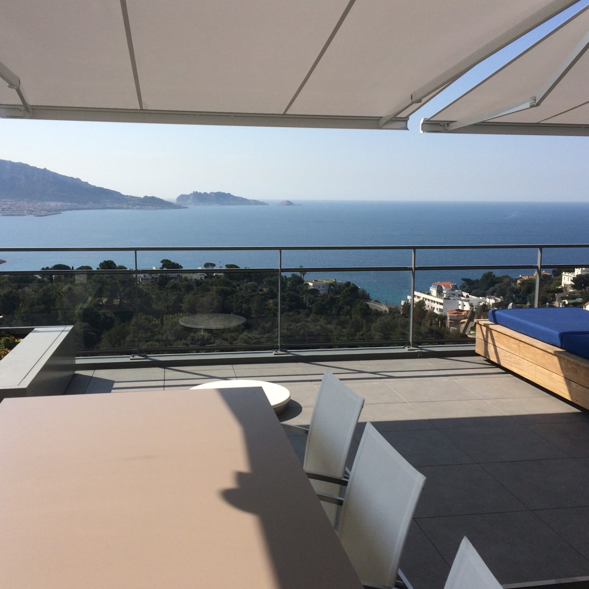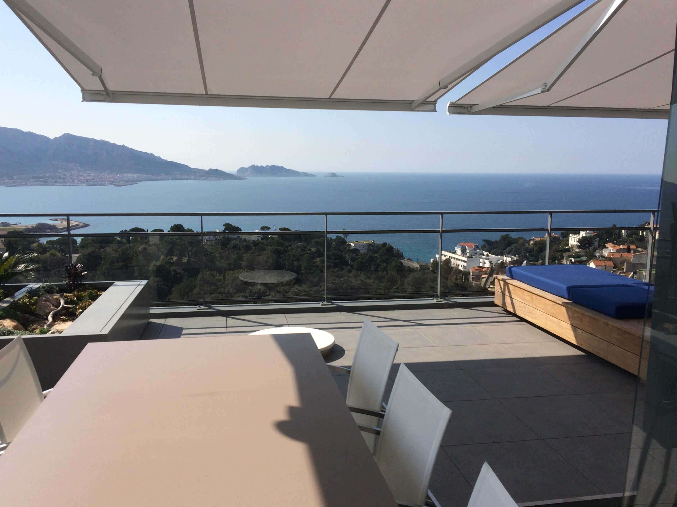 Un appartement de prestige sur la Corniche, près des plages du Prado, dans un des secteurs les plus recherchés de Marseille, au cœur d’une résidence sécurisée, un programme réalisé par Nexity et le cabinet Dosseti architectes. Cet appartement bénéficie d’une grande terrasse avec une vue exceptionnelle sur le parc paysager et la rade de Marseille. Les clients souhaitaient un aménagement global « sur mesure » de la terrasse comme un espace à vivre extérieure, nécessitant peu d’entretien.