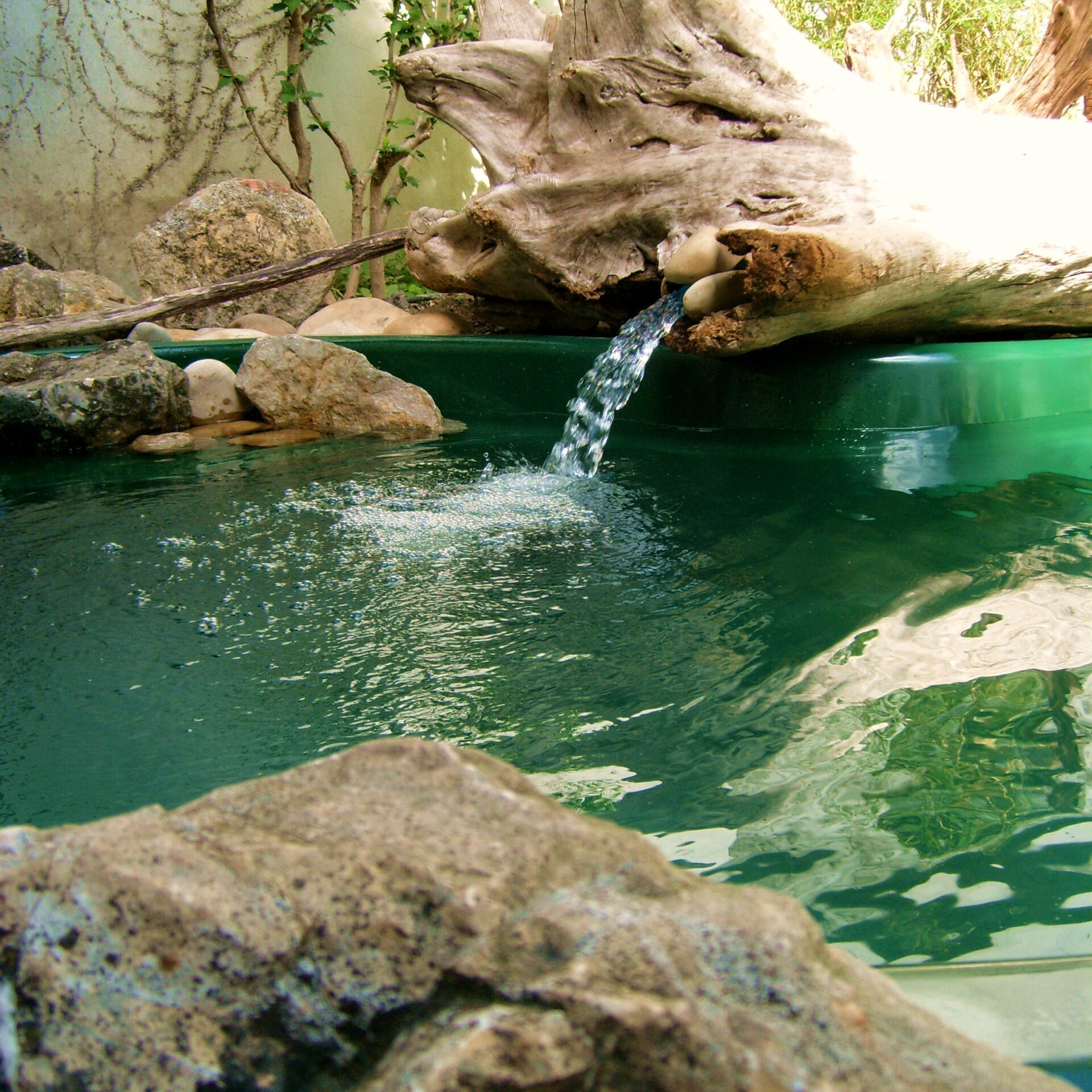 Le système de filtration du bassin aquatique de la marque OASE permet de se délaisser dans une eau saine.