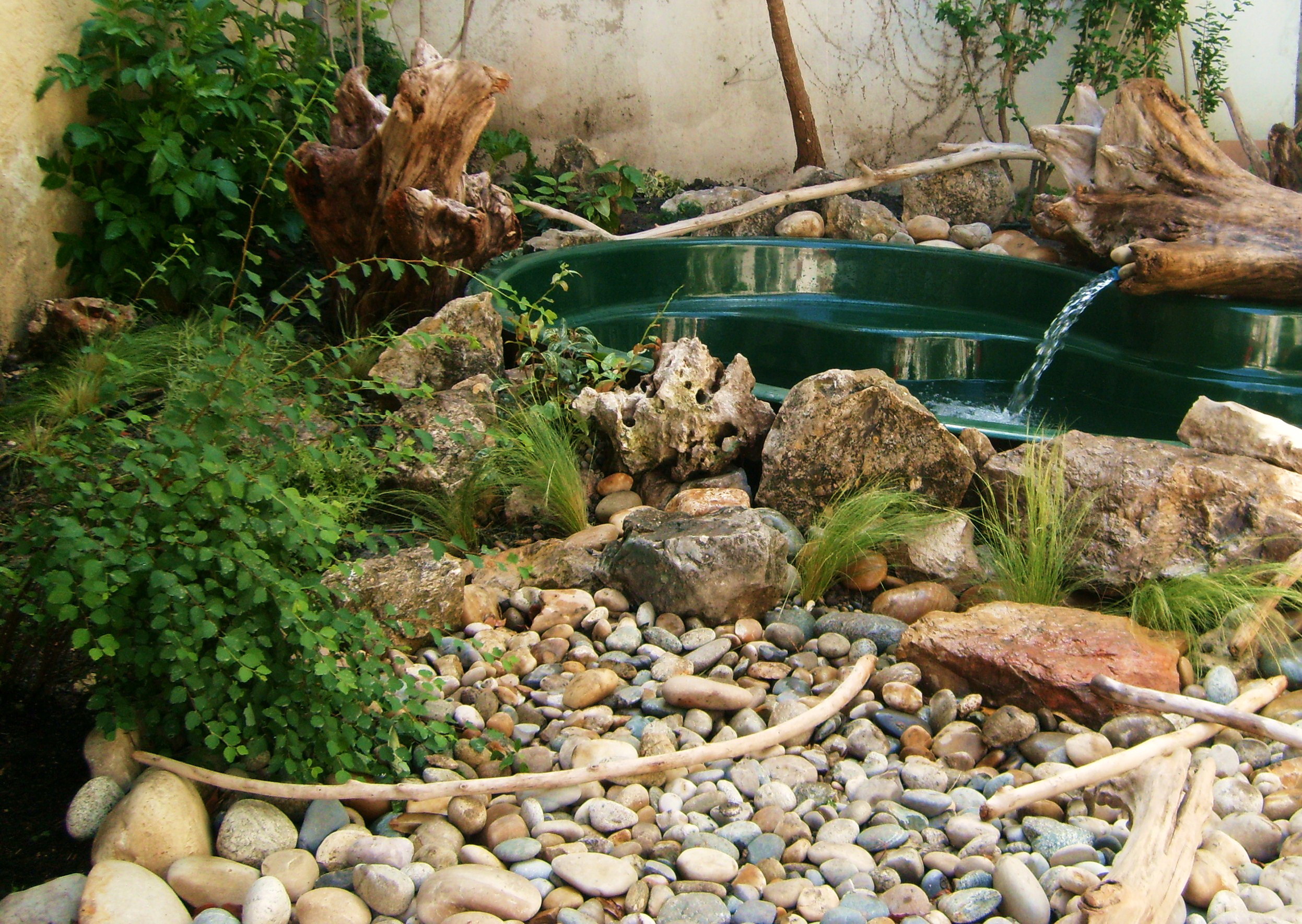 Un bassin aquatique de forme libre en plastique, une solution facile à mettre en œuvre à un cout maitrisé, rester à créer un décor autour de cet équipement.