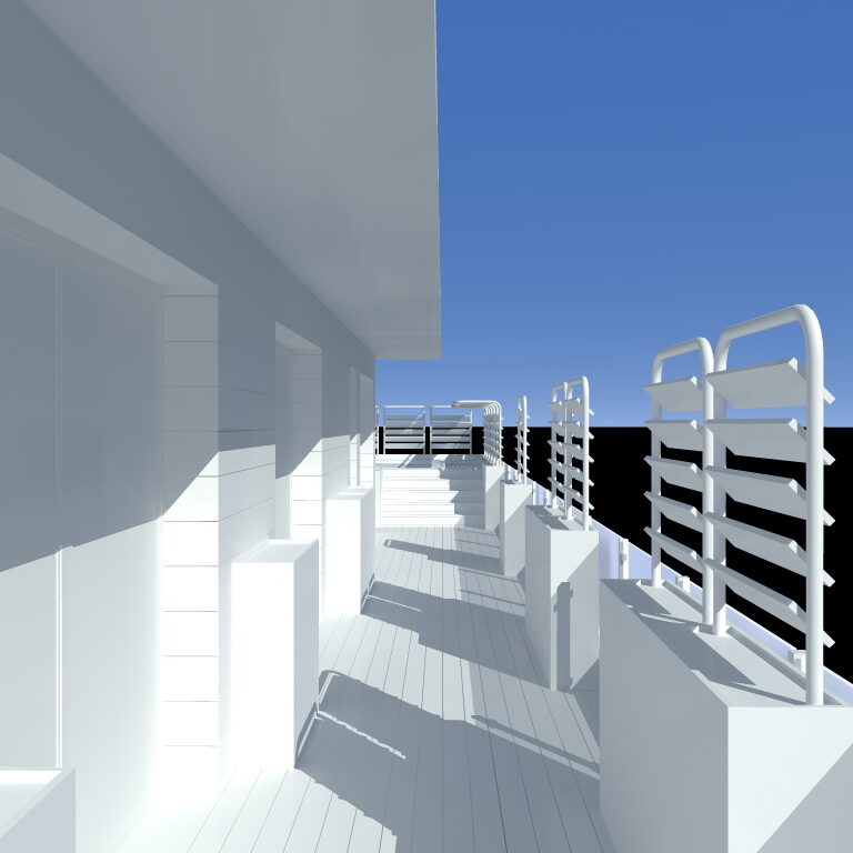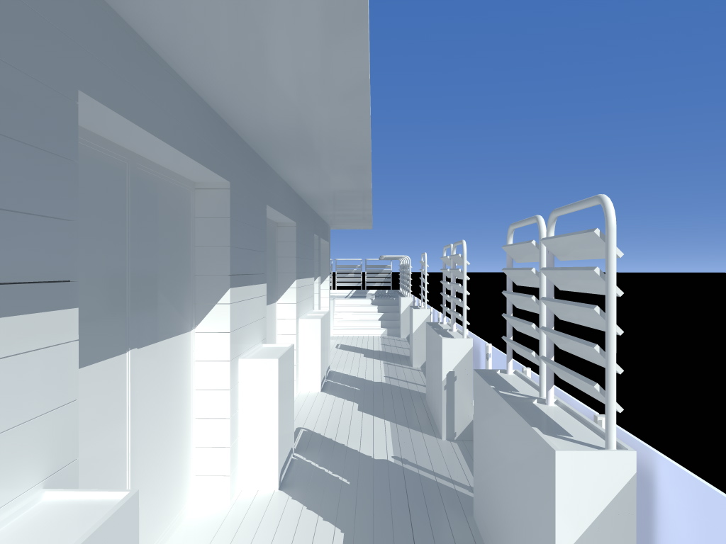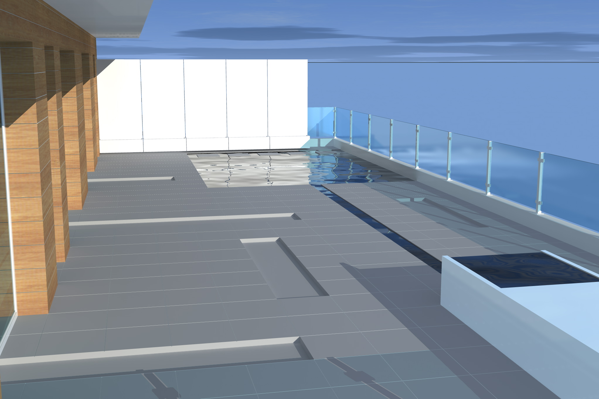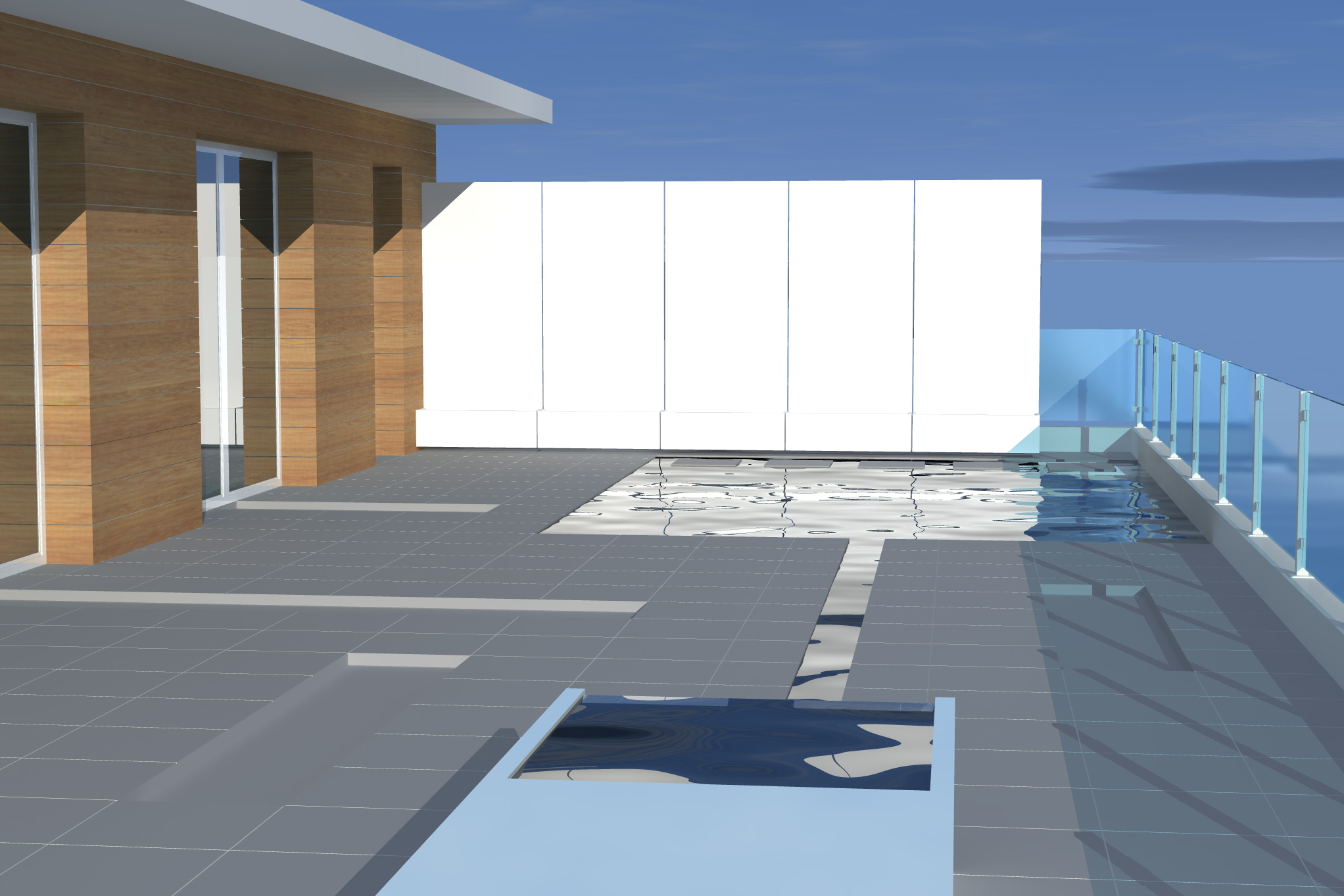 Toute la zone est traitée avec un platelage en bois exotique, y compris la terrasse chambre.