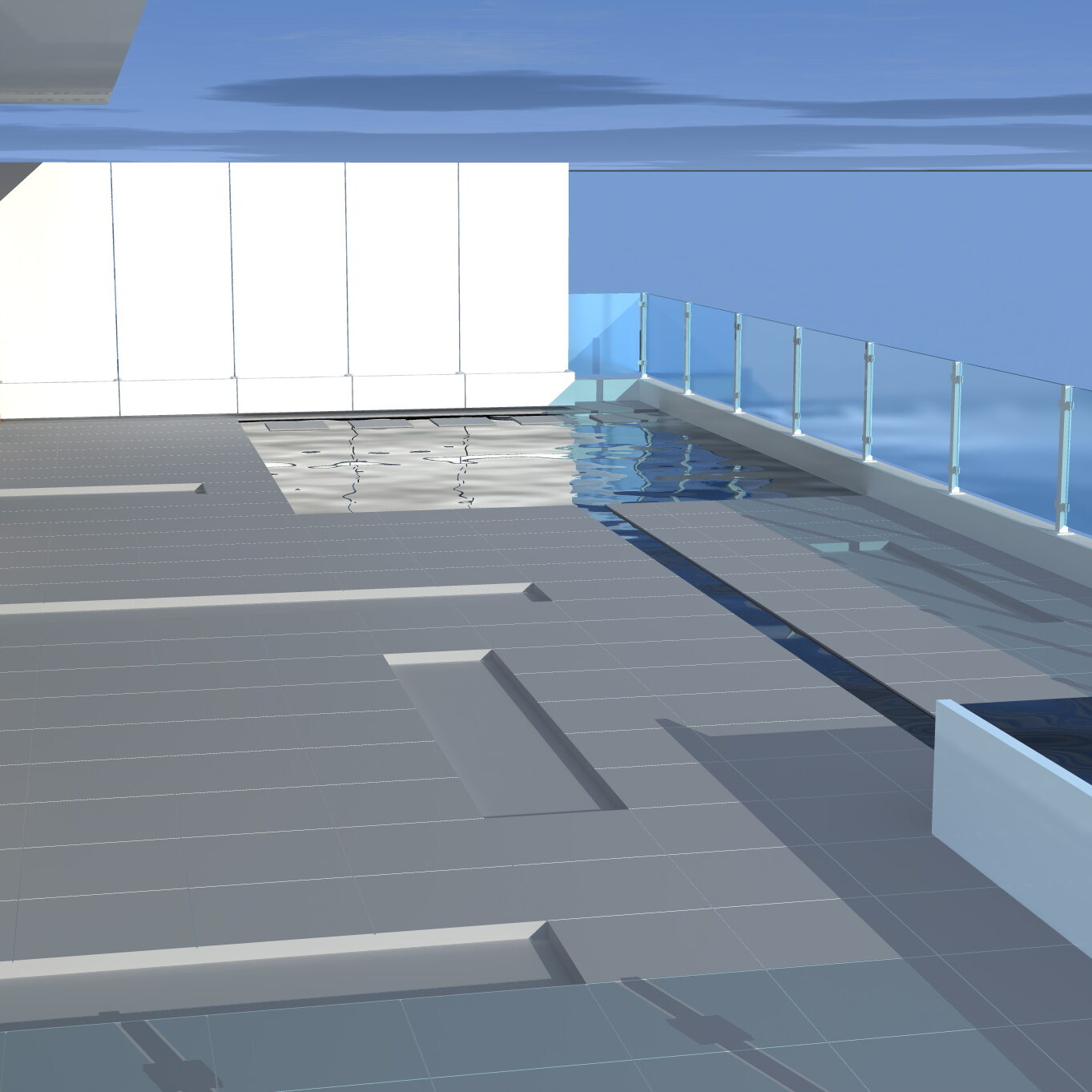 Le bassin comme un miroir d’eau sur le lac, au niveau de la terrasse.