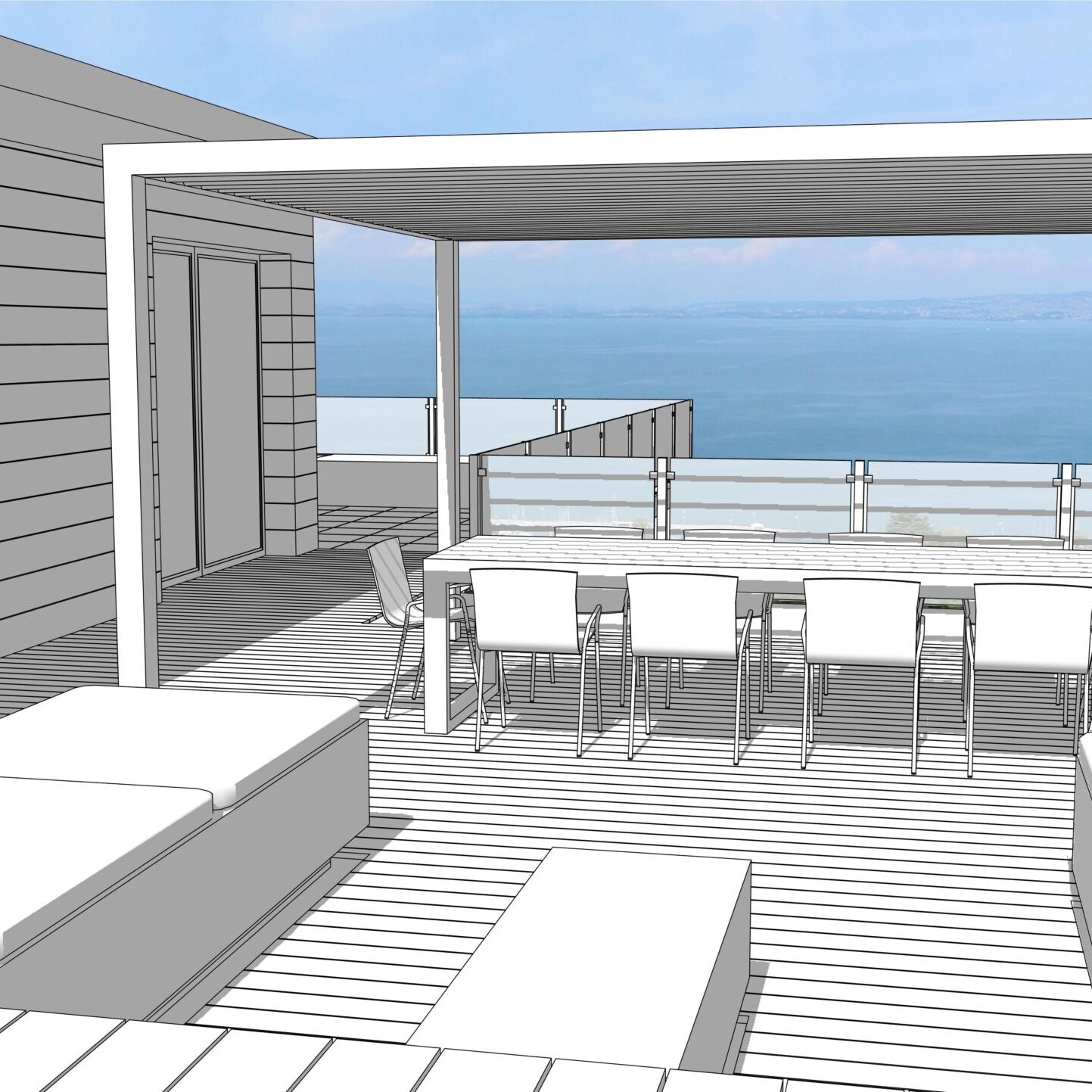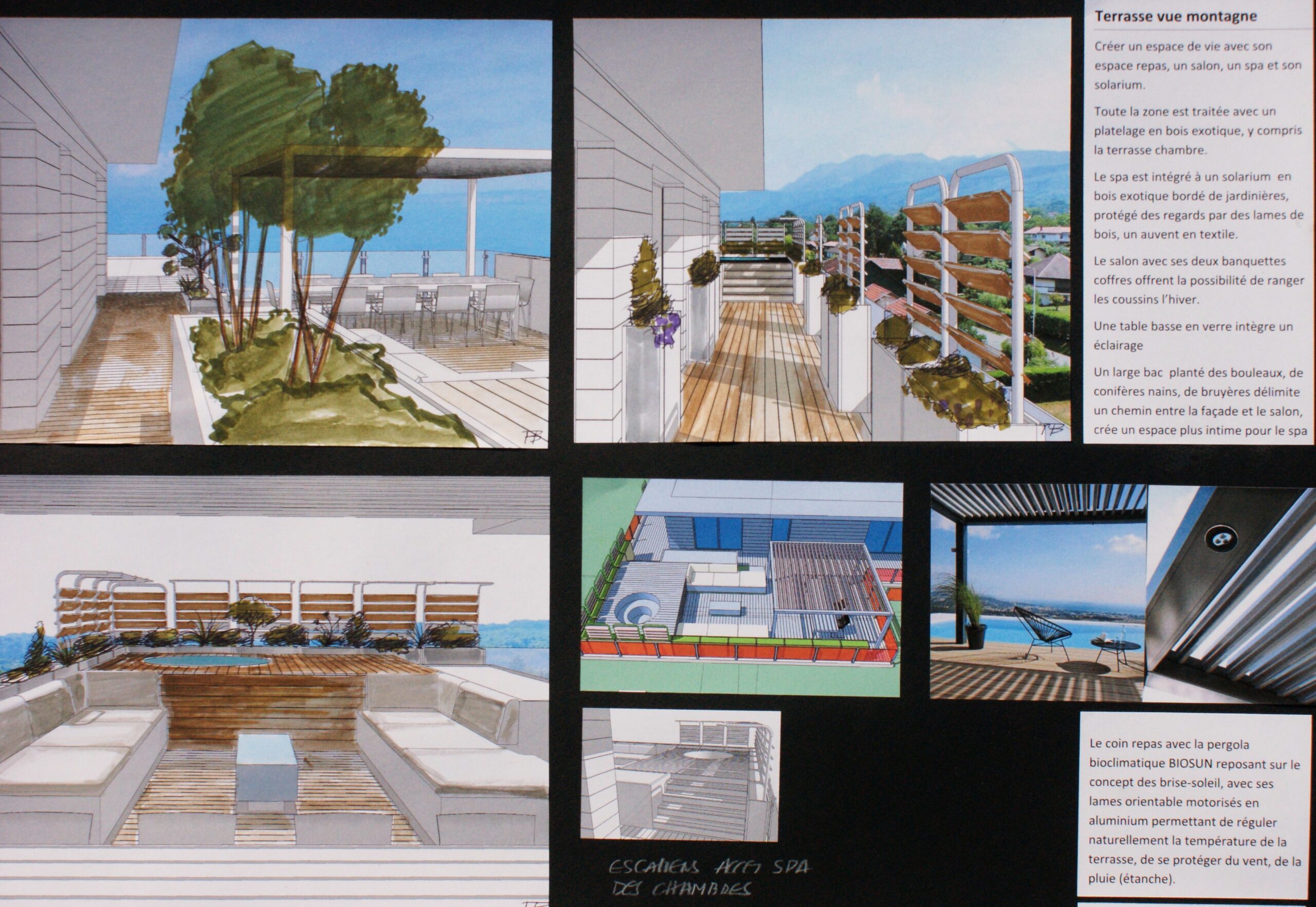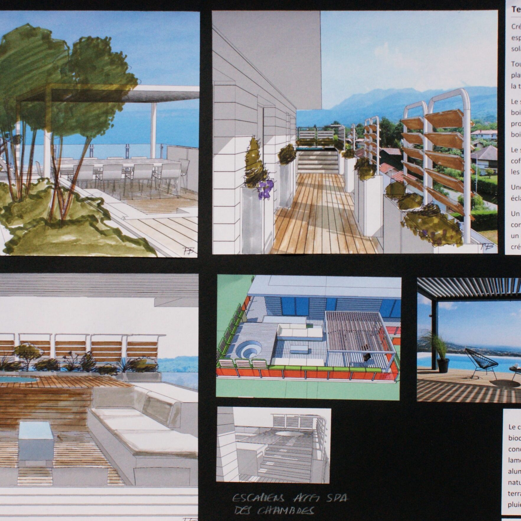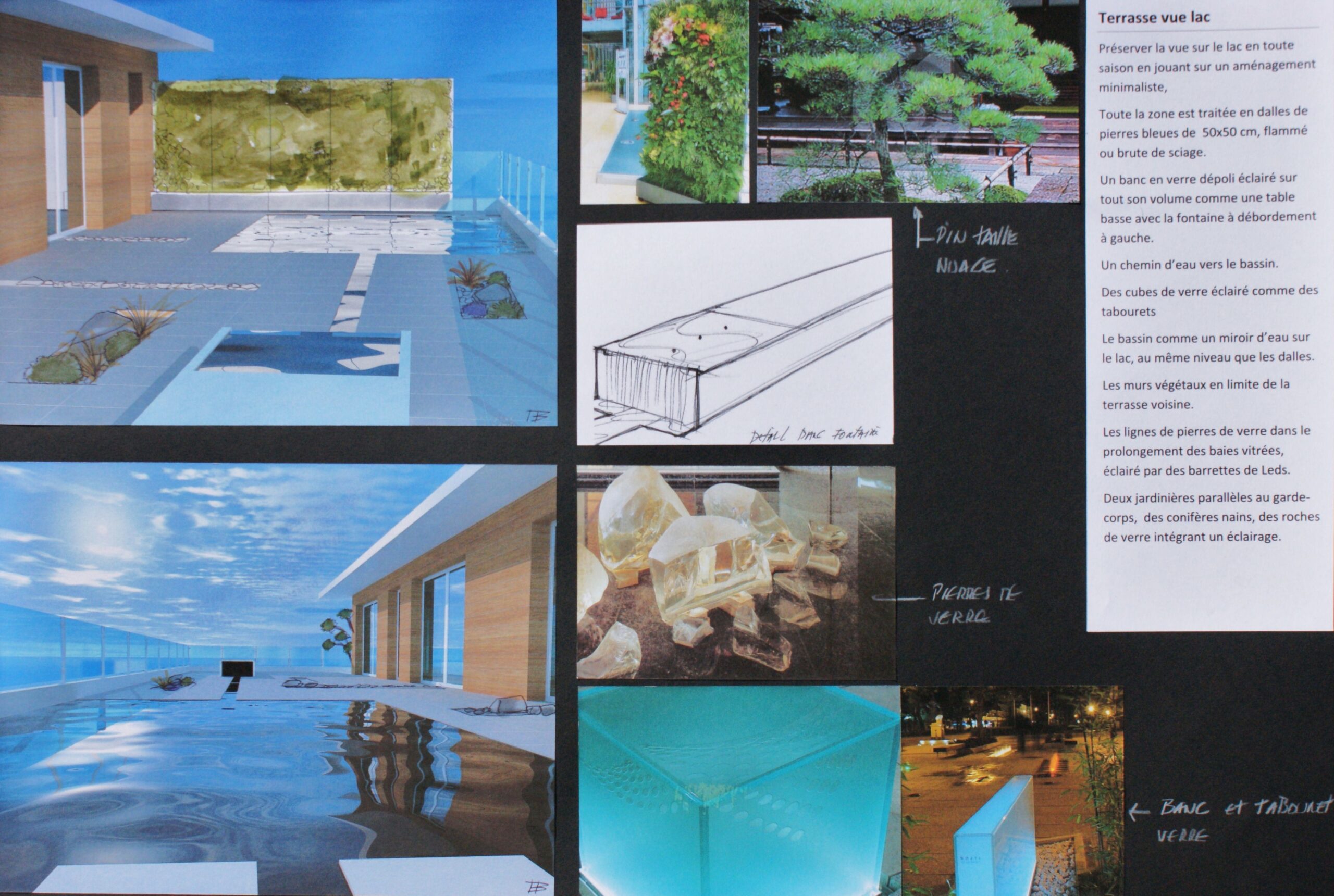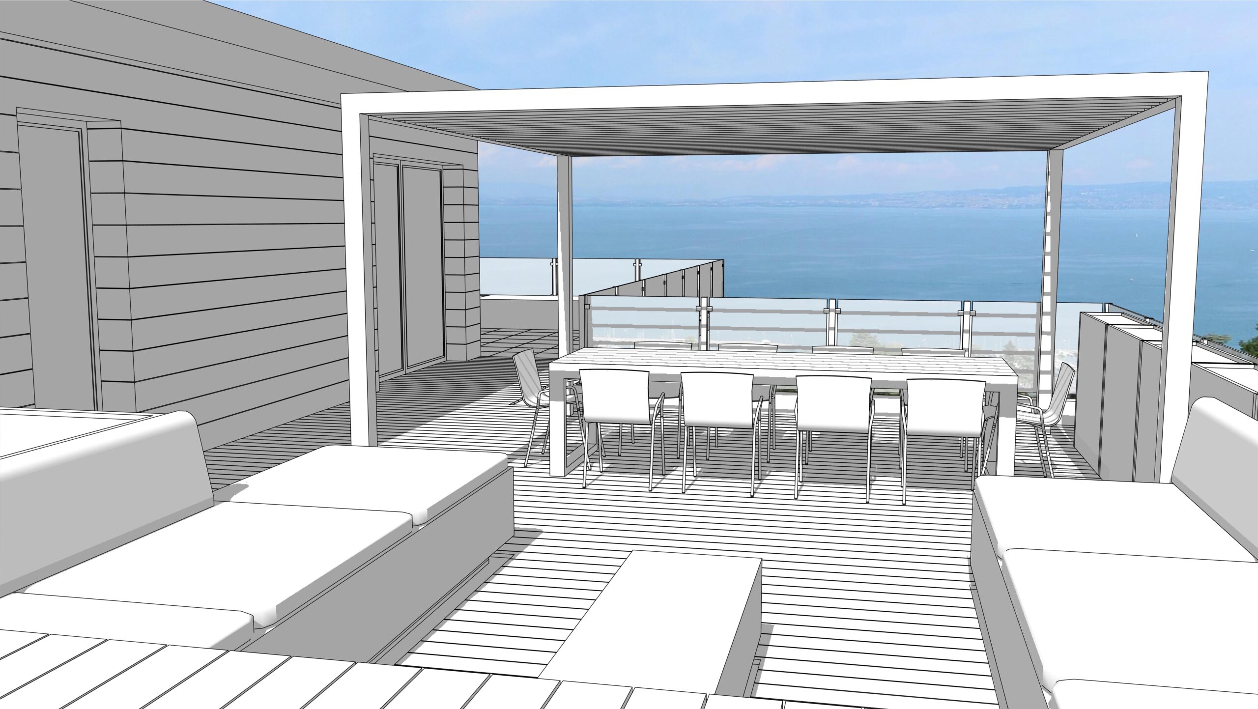 Projet de design de terrasses bénéficiant de vues privilégiées sur le lac Léman, la montagne.