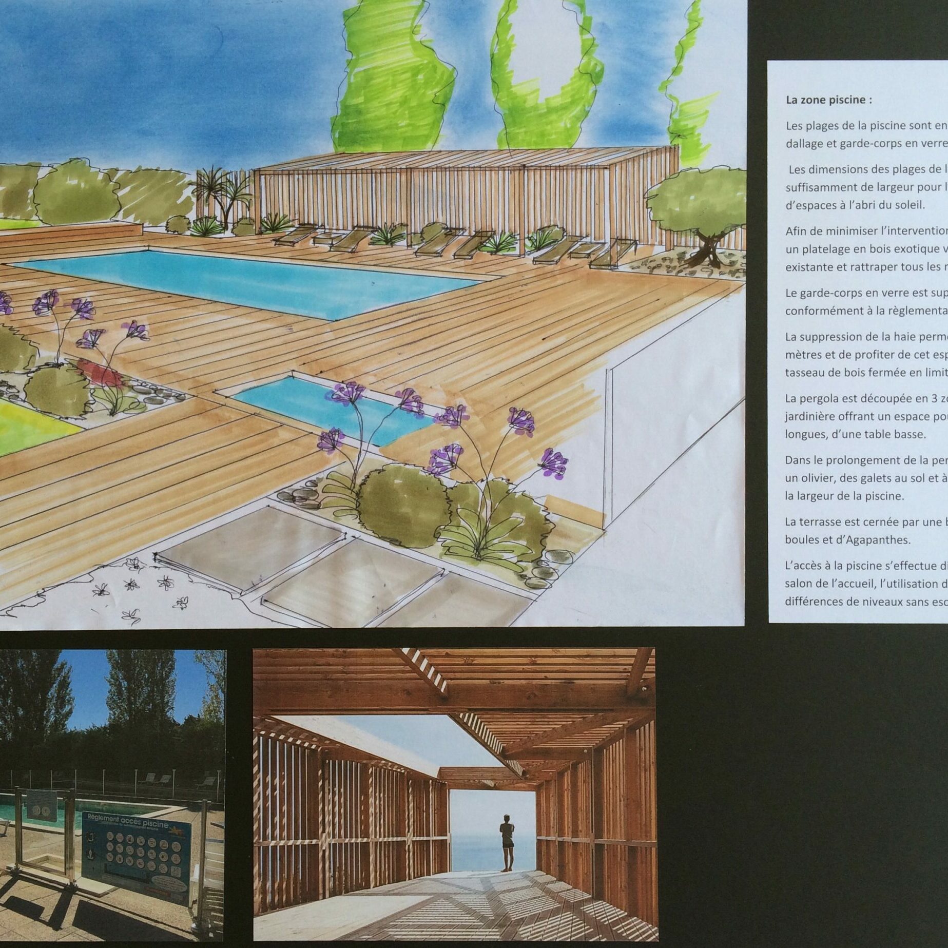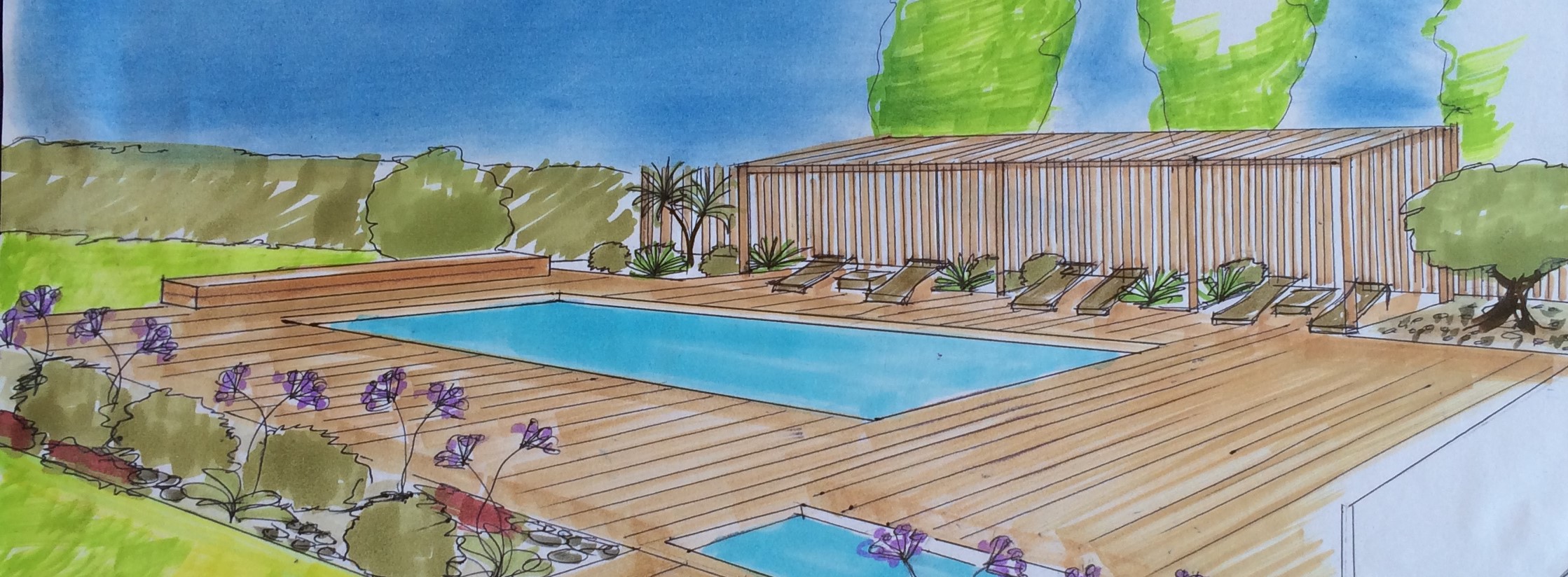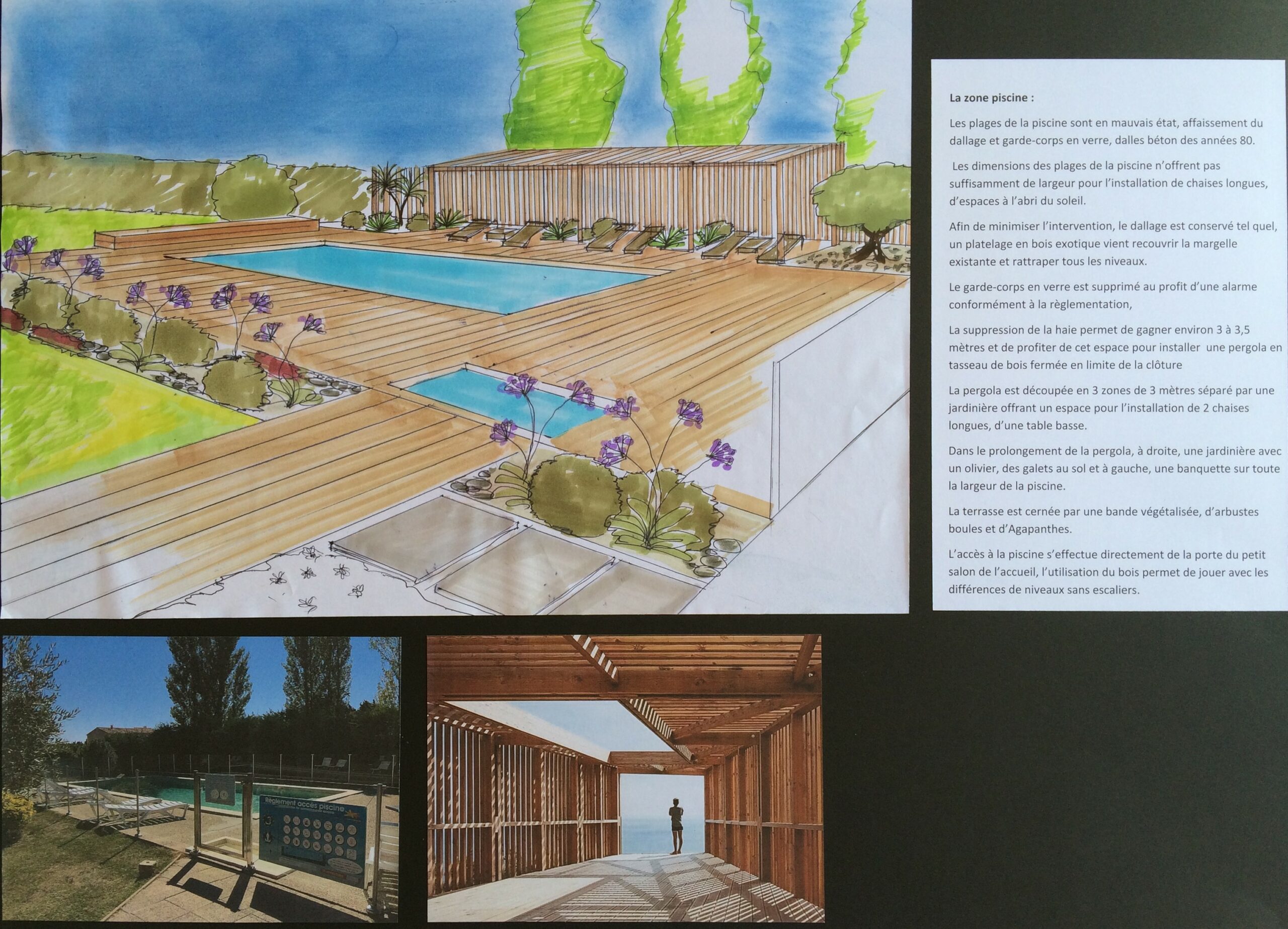 Le projet défini en 4 zones d’interventions : l’espace piscine, La terrasse repas, Les extérieurs des chambres et le jardin.