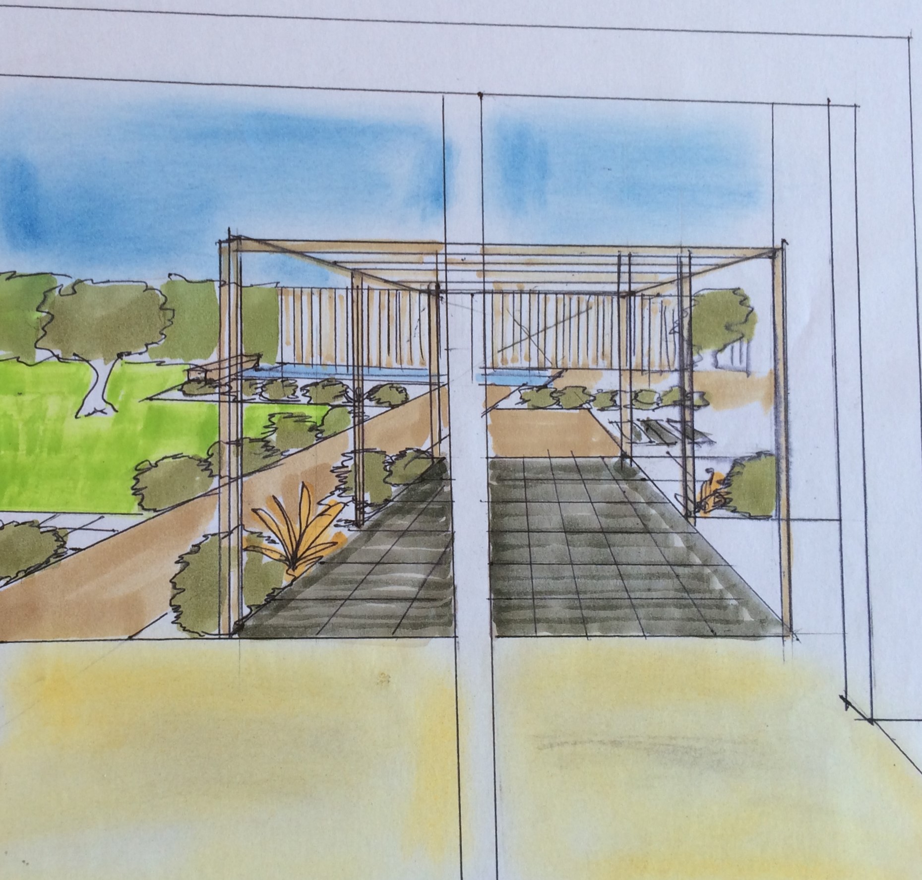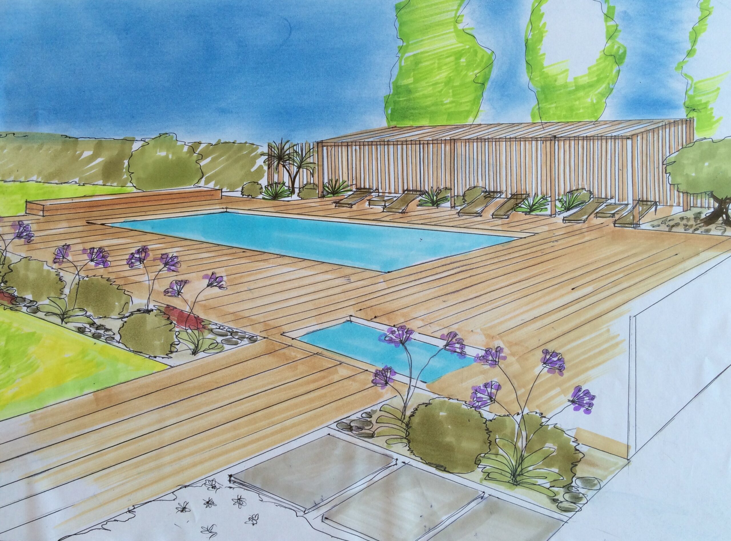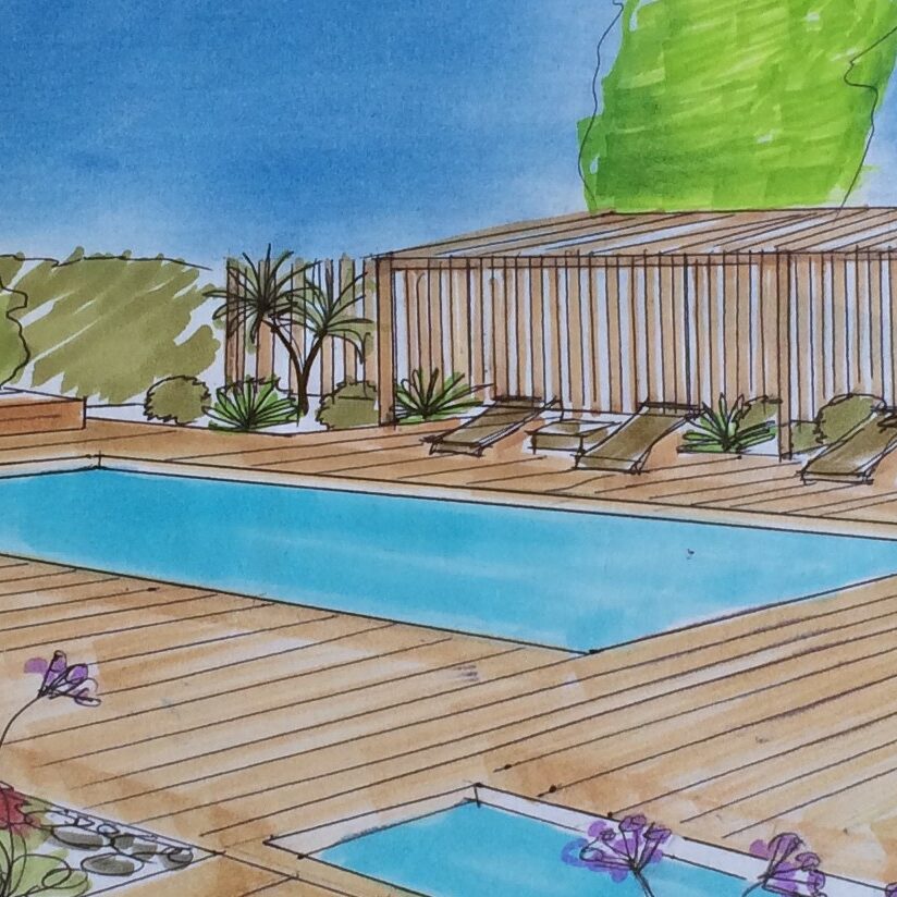 Le projet défini en 4 zones d’interventions : l’espace piscine, La terrasse repas, Les extérieurs des chambres et le jardin.