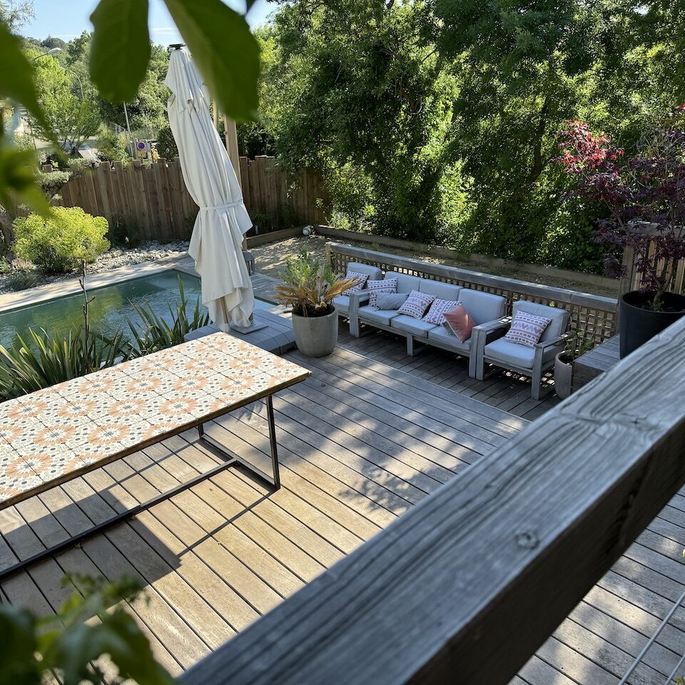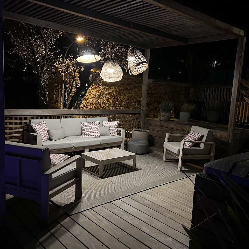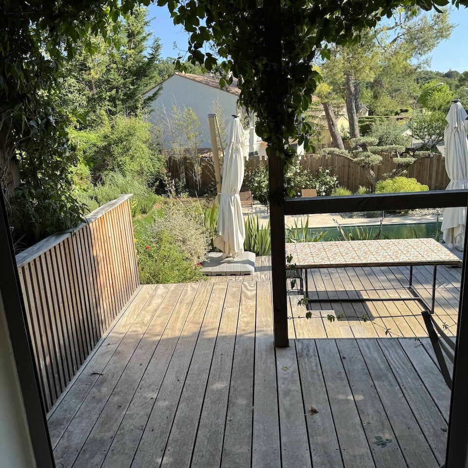 L’objectif du projet étaient de relier le séjour au jardin, de façon fluide et harmonieuse en créant des espaces de vie pour recevoir des amis, déjeuner en famille…