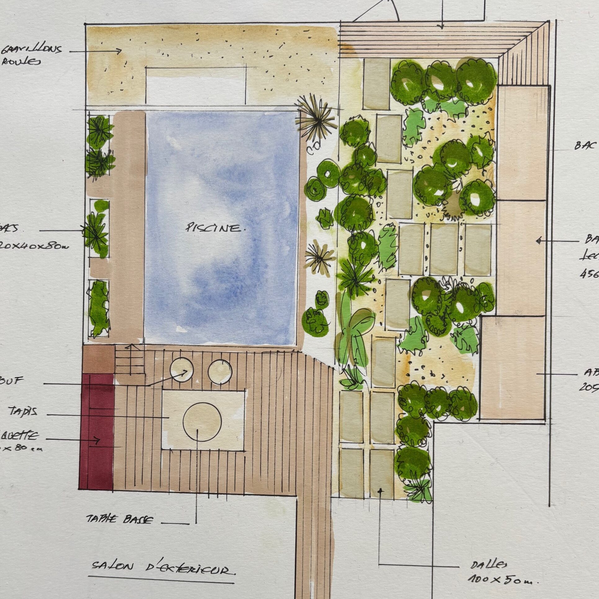 Privilégier les différences de niveaux, plusieurs plans en jouant sur les matériaux.