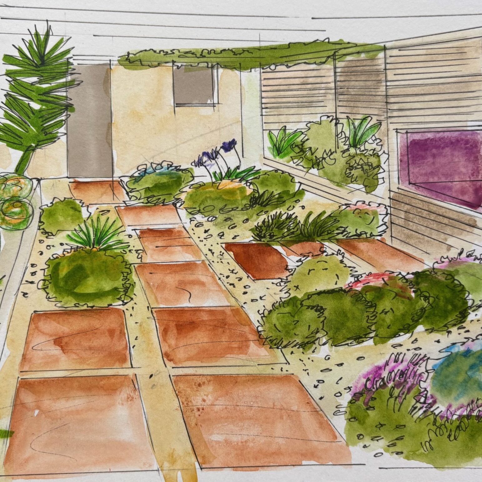 « les clients me disent « mon jardin est tout petit, comment puis je l’organiser », je leur répond, « si vous aviez un studio de 30 m2 à Paris ou New York, vous disposeriez d’une cuisine, d’une salle de bain, un petit salon, une chambre, des rangements, une bibliothèque