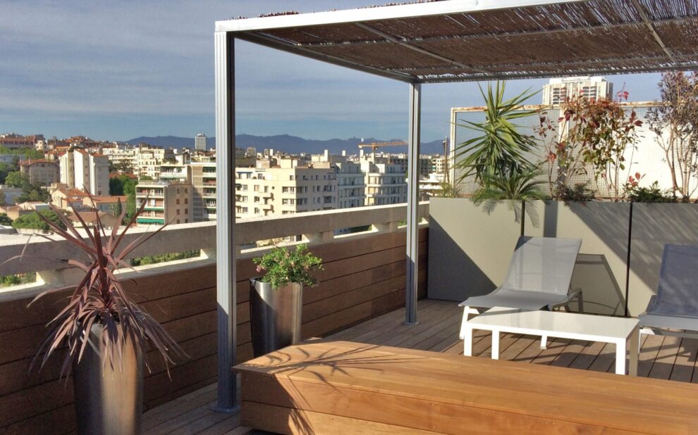 Aménagement du roof top d’un duplex à Marseille Prado Un projet d’aménagement de terrasses en Provence, au 16 éme étage…
