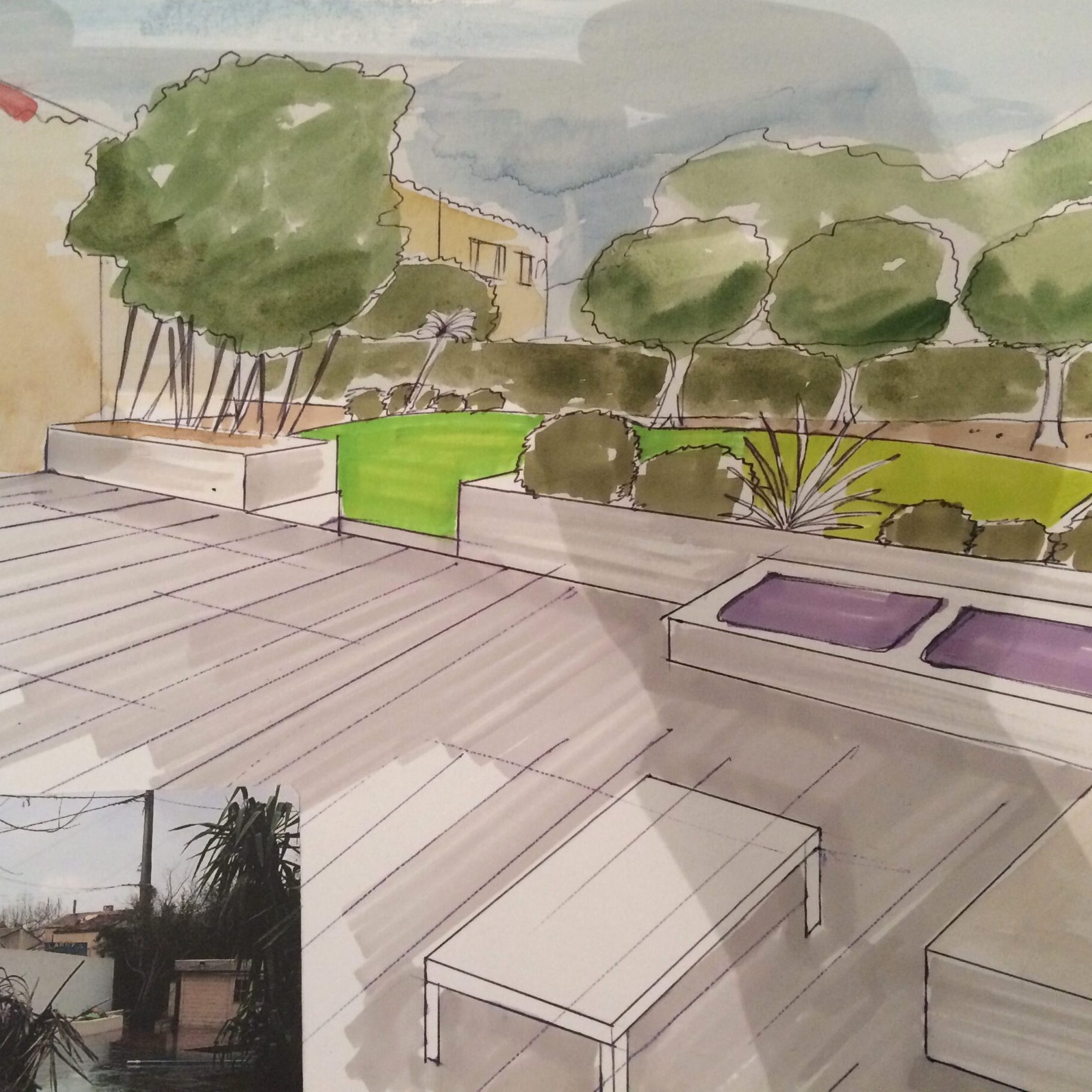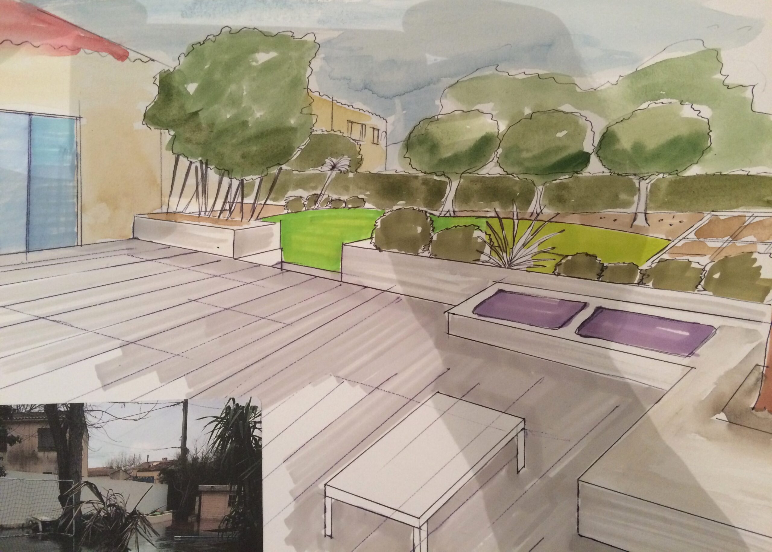 Un projet de jardin de ville à La Valette dans conçu par Patrick Bossa créateur de jardins en Provence.