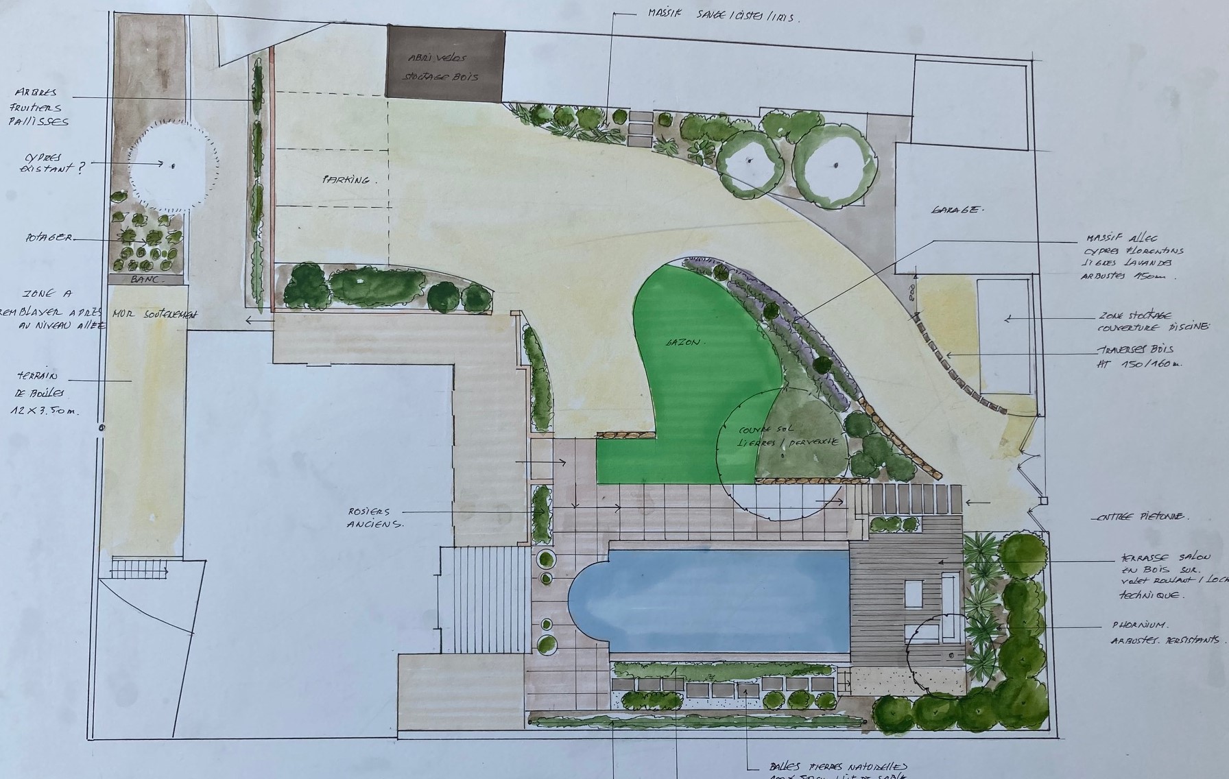 Nous vous guidons vers des solutions d’aménagement de jardins et conception de terrasses, pour vous permettre de vous projeter dans votre projet,  nous vous proposons une étude personnalisée réalisé par Patrick Bossa créateur de terrasses, jardins, espace piscine en Provence