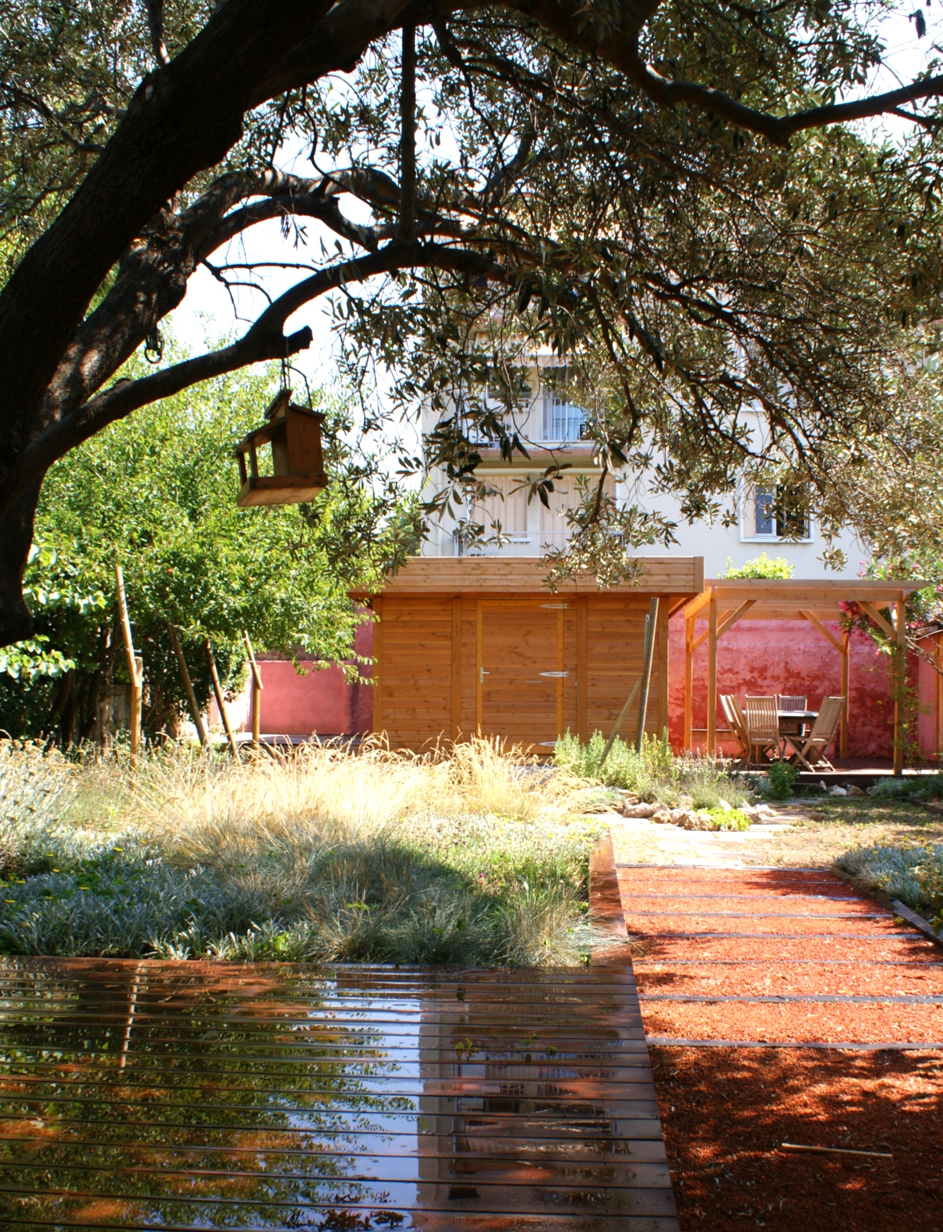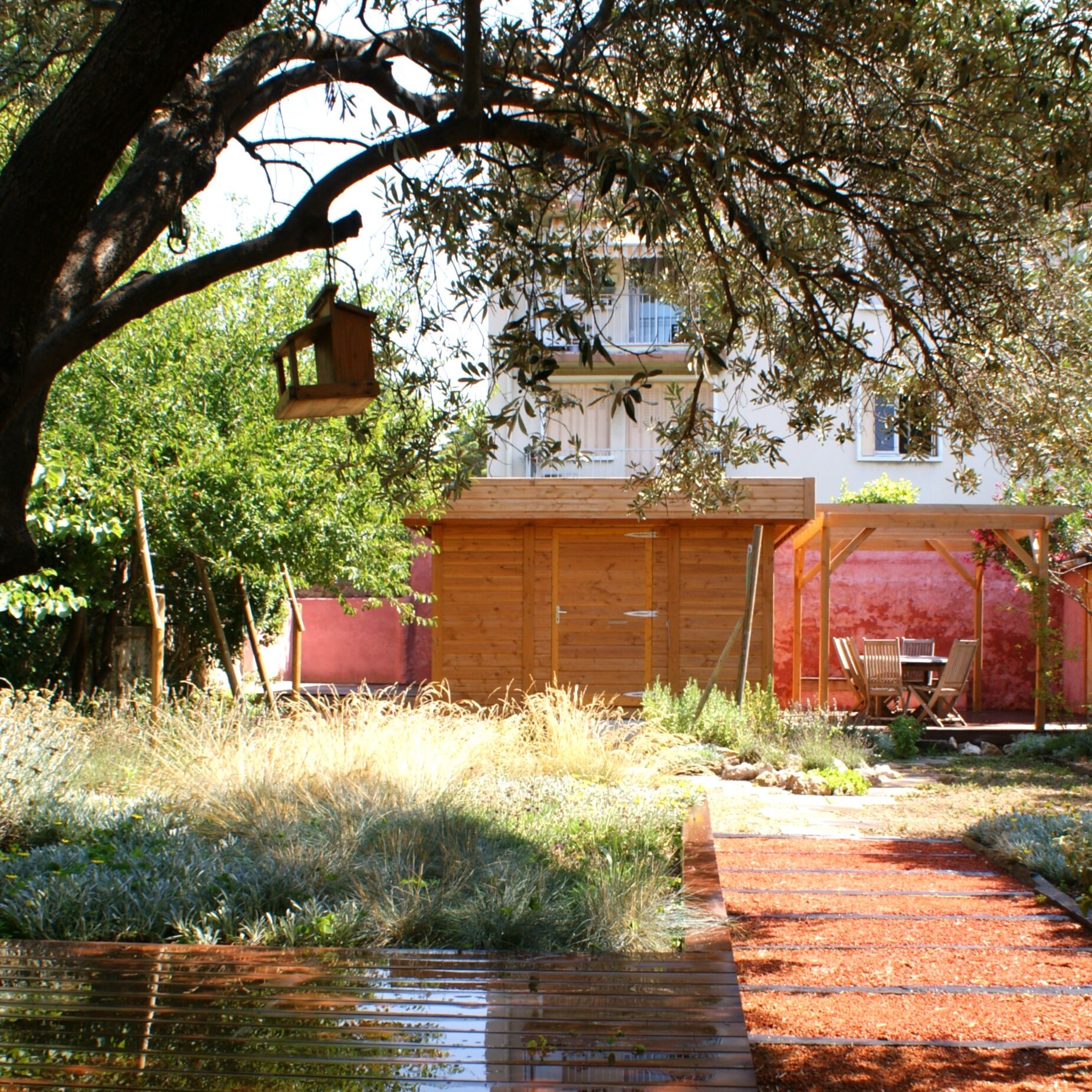 ce jardin conjugue modernité et atmosphère méditerranéenne, transformant l’espace extérieur en un véritable lieu de vie.
