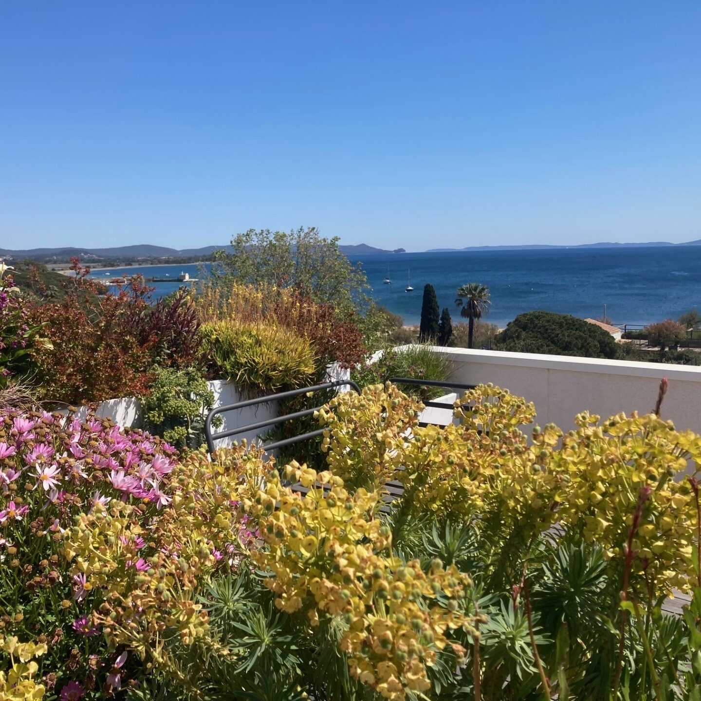 Une terrasse panoramique sur la mer et les marais salins à Hyères dans le Var